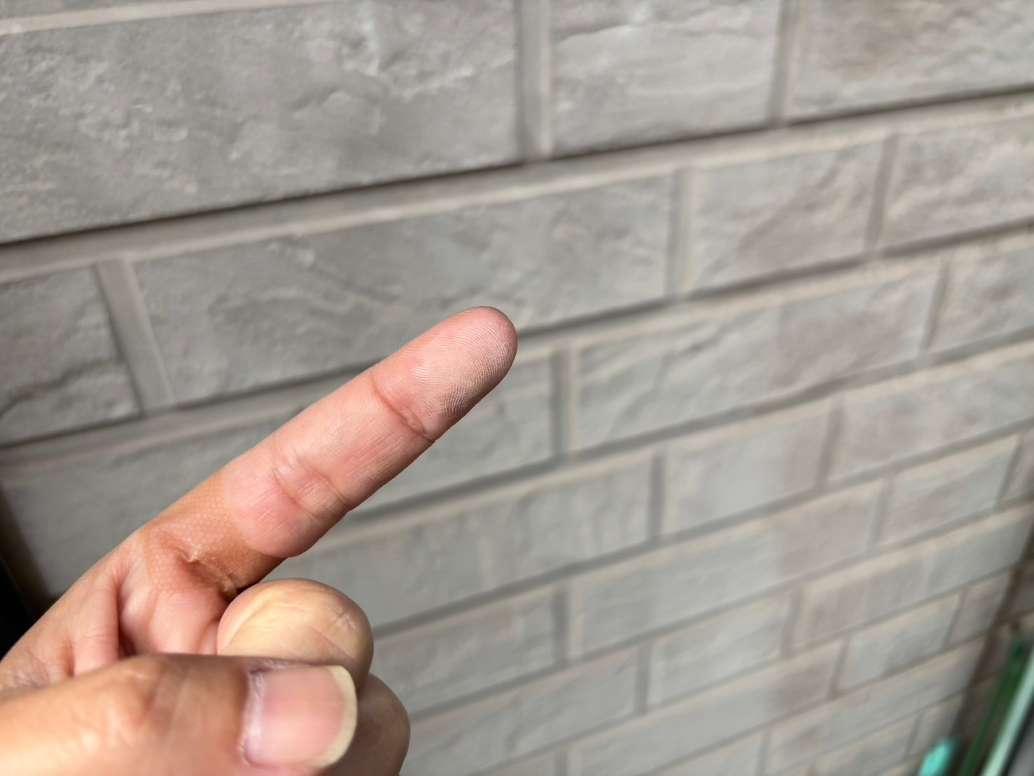 チョーキングとは、外壁を触ったときに白い粉が手につく状態のことです。