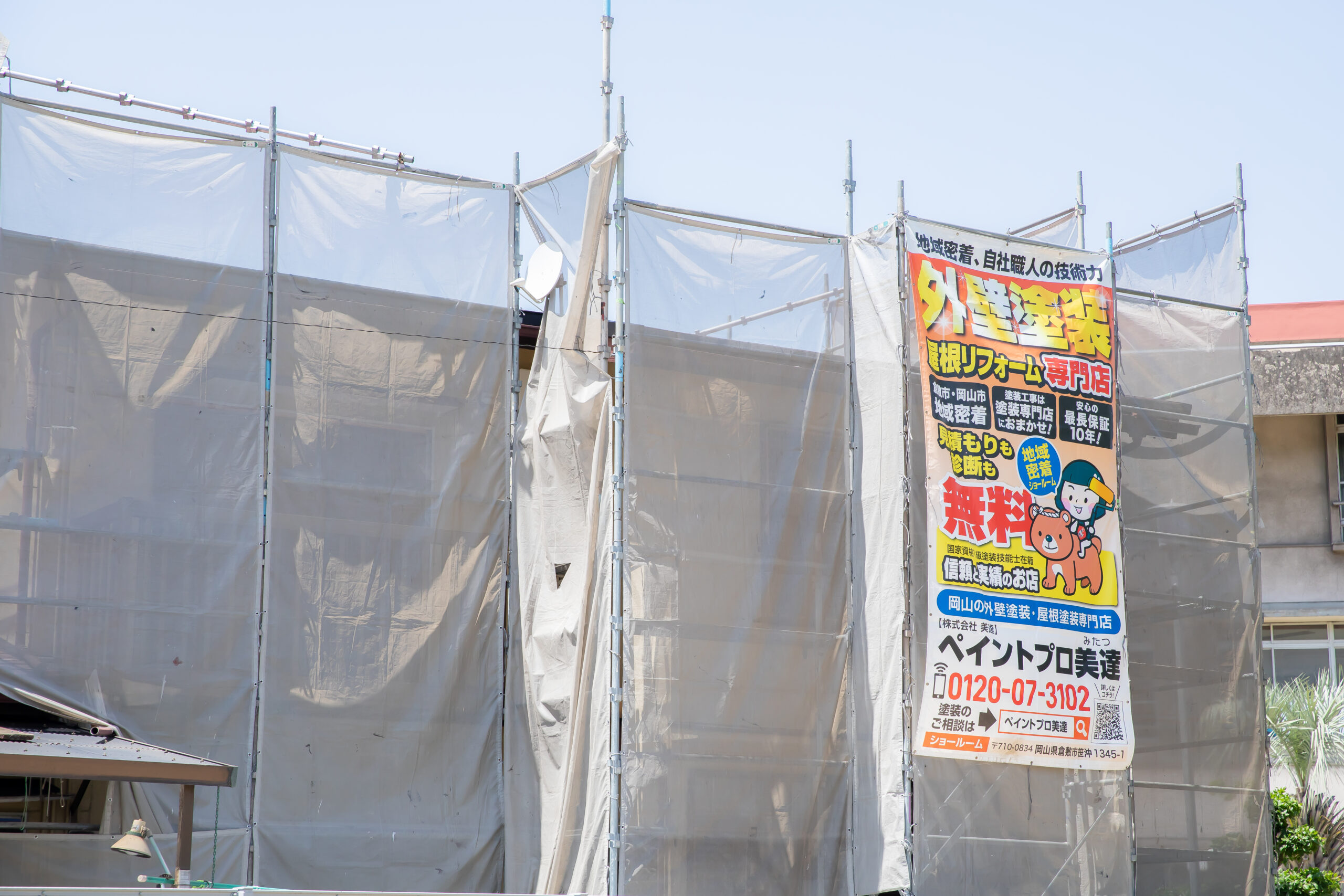 倉敷市は住宅が比較的密集しているエリアも多く、塗料の飛散対策は特に重要です。