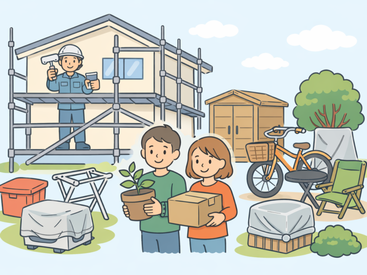 【足場を建てる前に確認】外壁まわりの荷物は片付けるべき?倉敷市で外壁塗装・屋根塗装を行う前の大切な準備