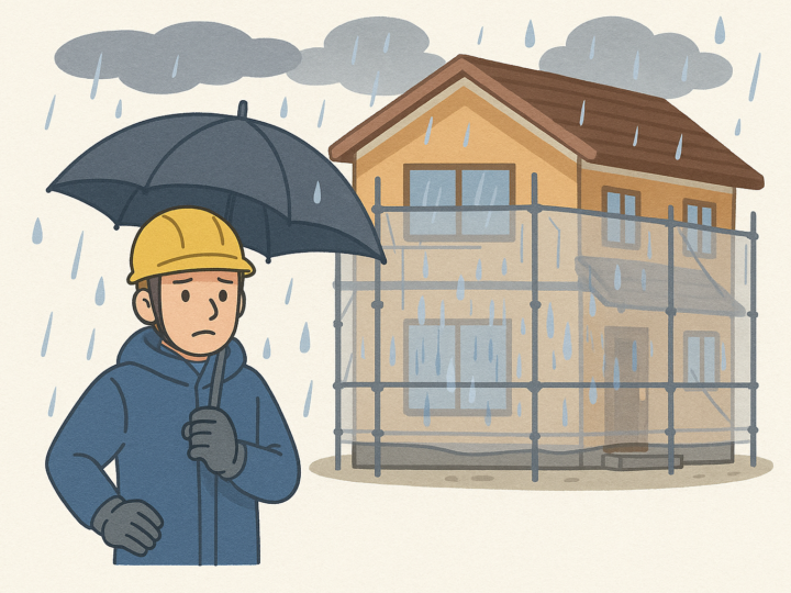 外壁塗装は、お住まいを長く守るために欠かせないメンテナンスのひとつです。 しかし屋外で行う工事である以上、天候に大きく左右されてしまいます。特に「雨」が続いた場合、工事の進行や品質にさまざまな影響が及ぶため注意が必要です。 本記事では、倉敷市で外壁塗装を行っているペイントプロ美達が、雨天時の外壁塗装工事への影響やリスク、そして安心して工事を進めるための対策について、詳しくご紹介します。 ペイントプロ美達は倉敷市の屋根塗装・外壁塗装・雨漏り工事・防水専門店です💁‍♀️✨ ペイントプロ美達は地元倉敷市の地域密着の塗装・雨漏り・防水専門店として 岡山県倉敷市で多くの工事をさせていただいております🤗🏠 これからも地域の皆様により愛される会社を目指し、塗装工事・雨漏り工事・防水工事業を通して 地域社会に貢献していきます☺💐 外壁塗装工事中に雨が続くと起こる影響 1. 工事の中断・延期 外壁塗装は基本的に雨の日には施工できません。特に湿度が85%を超える環境や、外壁が濡れている状態では、塗料の性能が大きく損なわれてしまいます。 そのため雨天が続くと、工事日数が減少し、全体の工期が長引くケースが多くなります。 また、梅雨や秋の長雨の時期には天気予報の急な変化もあるため、予定通りに進まないことは珍しくありません。 依頼主様からすれば「いつ終わるのだろう…」と不安を感じやすいポイントですが、無理に進めるより延期して乾燥を待つ方が確実に仕上がりは良くなります。 2. 塗装品質の低下 雨が続く中で塗装を強行すると、仕上がりや耐久性に深刻な影響が出ます。 乾燥する前の塗膜に雨が当たると、塗料が流れてしまいムラが残る 塗料が湿ったまま固まると密着力が低下し、後にひび割れや剥がれを引き起こす 水分が塗料に混ざると性能そのものが低下する このようなリスクを避けるため、雨天の施工は業者側も基本的に行いません。 雨の日に塗装を行った場合のリスク 塗料性能の低下 塗料はメーカーごとに決められた使用条件(湿度・温度)を守ることで性能を発揮します。 雨水が混入すると塗料が薄まり、期待した耐候性・防水性・美観が維持できなくなります。結果として、色ムラ・早期退色・耐久年数の短縮といったトラブルにつながります。 乾燥の遅れ 塗料は適切な乾燥時間を経て次の工程に進みます。しかし湿度が高いと乾燥が遅れ、予定より大幅に時間がかかります。 塗膜が不完全なまま進行すると、後々の剥がれや膨れの原因となります。 密着不良・剥がれ 水分が下地表面に残っていると、塗料がしっかり食いつかずに気泡が入り、塗膜の浮きや剥がれを引き起こします。 見た目が悪いだけでなく、建物を保護する機能も失われてしまいます。 作業中の安全性低下 雨天での工事は足場や屋根が滑りやすく、職人の転倒・転落リスクが増大します。安全を最優先に考えれば、雨の日に作業を強行するのは非常に危険です。 雨が続いたときに工期はどうなる? 「雨が多いといつ終わるの?」と心配される方も多いでしょう。実際には、雨が続けばその分だけ作業がストップし、工期は延長されます。 例えば通常2週間で終わる予定だった工事が、雨天で3週間以上に延びることもあります。 ただし、多くの業者はあらかじめ「天候によって工期が変動する可能性」を説明しており、契約書や打ち合わせの段階で了承を得るのが一般的です。 そのため施主様としては、気象予報や進行状況を踏まえて業者に工期を確認し、無理のない日程で進めてもらうことが安心につながります。 雨天時に注意したいこと 工事が中断しても焦らないこと 無理に続行してしまう方が仕上がりに悪影響を与えます。雨の日は休工して正解です。 業者とスケジュールを共有すること 雨天が続くときは、工期がどのくらい延びそうか事前に確認しましょう。 梅雨や台風シーズンを避けて計画すること 長雨の多い時期を外して依頼すれば、スムーズに工事を進めやすくなります。 ペイントプロ美達が行う工期管理の工夫 倉敷市で外壁塗装を行う当社では、以下のような工夫で雨天リスクを最小限に抑えています。 地域の気候を考慮し、長雨シーズンを避けた工期提案 天気予報を常にチェックし、急な雨に備えて柔軟にスケジュールを変更 無理な強行施工は行わず、品質を最優先に判断 雨で工期が延びた場合も進行状況を丁寧にご報告 「少し時間がかかっても、長持ちする塗装」を実現するために、雨天時の管理を徹底しています。 まとめ 外壁塗装工事は天候に大きく左右されます。雨が続けば工期が延びてしまうのは避けられませんが、無理に塗装を行うよりも延期して乾燥を待つ方が確実に良い仕上がりになります。 ・雨の日に施工すると塗料の品質が低下する ・乾燥が遅れてムラや剥がれの原因になる ・職人の安全確保のためにも雨天施工は避けるべき こうした点を理解したうえで、業者と工期の調整を行えば安心して工事を任