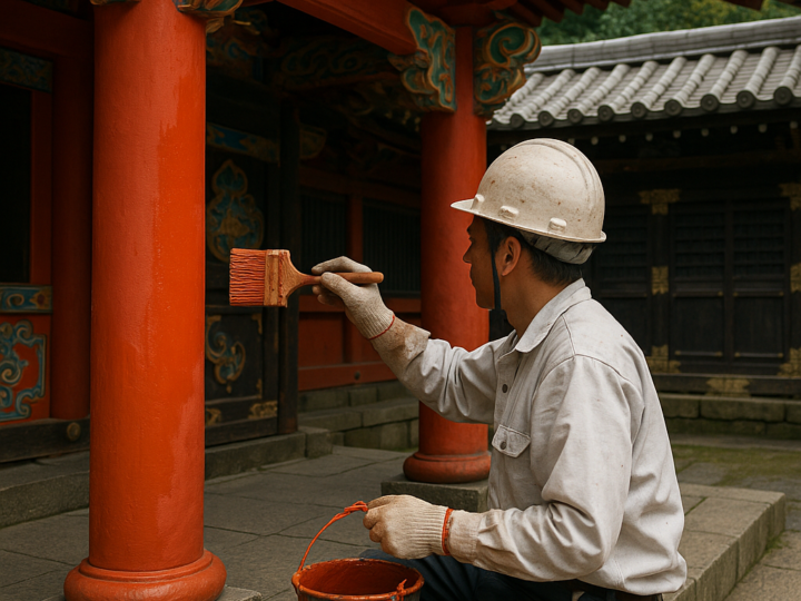 後世に残すべき価値のある歴史的建造物を守るためには、定期的な修復作業が欠かせません。 建築そのものの補強や屋根の葺き替えなどと並び、外観を支える「塗装」は非常に重要な役割を担っています。 見た目を整えるだけでなく、雨風や紫外線から建物を守り、長い年月を経てもその文化的価値を保ち続けるために不可欠なのです。 本記事では、日本の伝統的な塗装素材や塗装技術の特徴、さらには現代における技術との融合について詳しく解説していきます。 ペイントプロ美達は倉敷市の屋根塗装・外壁塗装・雨漏り工事・防水専門店です💁♀️✨ ペイントプロ美達は地元倉敷市の地域密着の塗装・雨漏り・防水専門店として 岡山県倉敷市で多くの工事をさせていただいております🤗🏠 これからも地域の皆様により愛される会社を目指し、塗装工事・雨漏り工事・防水工事業を通して 地域社会に貢献していきます☺💐 典型的な塗装素材 漆(うるし) 漆は、日本の伝統文化を語るうえで欠かせない塗装素材のひとつです。 ウルシ科の木から採取される樹液を精製して作られるもので、防水性や耐久性に優れています。 神社や仏閣など、格式の高い建築物に多く用いられてきました。 日本特有の高温多湿な環境に適しており、自然に固まる性質を持っています。 さらに抗菌作用があるため、古くは食器や家具にも使用されました。 縄文時代の遺跡からも漆を施した土器が見つかっており、その歴史は非常に古いことが分かっています。 ベンガラ 鉄分を含んだ赤土を焼成して作られる顔料がベンガラです。 鮮やかな赤色が特徴で、古民家や蔵の外壁、寺社建築の装飾に広く利用されてきました。 無害で人体にも安全であり、防虫・防腐の効果を持つため、木造建築には非常に適しています。 地域によって微妙に色合いが異なり、土地ごとの景観を形作る要素にもなっています。 膠(にかわ) 膠は、動物の皮や骨から作られる接着剤で、伝統的な塗装においても欠かせない材料です。 塗料の粘りを調整し、強固な塗膜を形成する役割を果たしました。また、木工や書物の製本にも利用され、日本の工芸全般に広く浸透しています。 今日でも日本画の絵具を定着させるために使われるなど、芸術の分野でも活躍しています。 柿渋(かきしぶ) 渋柿から抽出される液を発酵させて作る柿渋は、古くから木材の保護や染料として利用されてきました。 防水・防虫・防腐に優れ、建物の柱や梁に塗布することで、腐食やカビの発生を防いできました。 外壁や家具のほか、和紙を丈夫にするための加工にも使われ、暮らしの中で幅広く活用されています。 塗装技術の特徴 手塗りによる仕上げ 歴史的な建造物の修復においては、機械的な塗装ではなく、刷毛を用いた手作業が基本です。 細部にまで丁寧に塗り重ねることで、建物の素材が持つ質感を活かした仕上がりが実現します。 均一な厚みを持たせることで、長期にわたり塗膜の性能を維持できるのです。 重ね塗り 一度塗りだけでは耐久性が不十分なため、伝統的な工法では何度も重ね塗りが行われます。 塗りを繰り返すことで層が厚くなり、雨や湿気、紫外線からの保護力が高まります。 特に神社仏閣の鮮やかな色彩は、この重ね塗りによって深みが増しているのです。 自然乾燥 現代の建築塗装では乾燥機や送風を利用することもありますが、歴史的な建造物の塗装では自然乾燥が主流でした。 乾燥に時間はかかるものの、塗膜が安定し、剥がれにくい強固な仕上がりが得られます。 これもまた、長寿命な建築を実現する知恵のひとつといえます。 色彩の再現 修復においては、単に塗り直すのではなく「当時の色」を再現することが大切です。 古文書や残存する塗膜を分析し、色合いや光沢を忠実に復元します。 その結果、建物は往時の姿を蘇らせ、文化的価値がより一層引き立ちます。 天然顔料の活用 歴史的建造物の塗装には、自然由来の顔料が多く利用されました。 赤土や黄土、植物由来の染料など、地域の風土に根差した素材が選ばれています。 特にベンガラは、日本独自の景観を彩る重要な存在で、赤茶色の町並みは今も各地に残されています。 これら天然顔料は環境への負荷が少なく、持続可能な素材として現代に再評価されています。 技術の進化と現代の工法 近代以降、科学的に合成された塗料が登場し、従来の天然素材に比べて施工効率や耐久性が大きく向上しました。 現在では、環境に優しい水性塗料や低VOC塗料が一般化し、伝統的な建築の修復でも採用されるケースが増えています。 従来の素材では対応しきれない劣化への対策や、防火・防カビといった新しい機能を備えた塗料が導入され、文化財をより安全に守れるようになってきました。 伝統技術の継承の重要性 いくら新しい塗料や機械が普及しても、歴史的建造物の修復では伝統的な技術が欠かせません。 漆塗りの技や手作業による丁寧な仕上げは、職人の経験と感覚によって受け継がれて