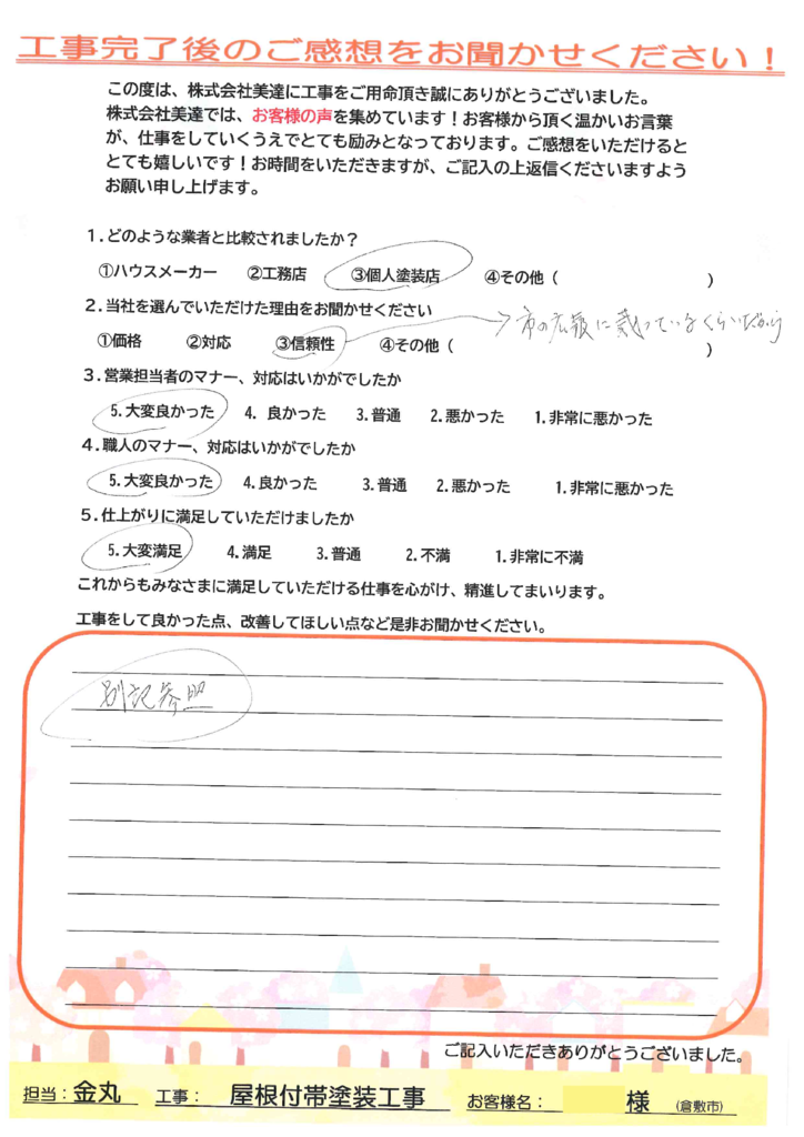 また、数ある業者の中から弊社をお選びいただき、そして大切なお住まいの工事をお任せいただきましたこと、改めて御礼申し上げます。